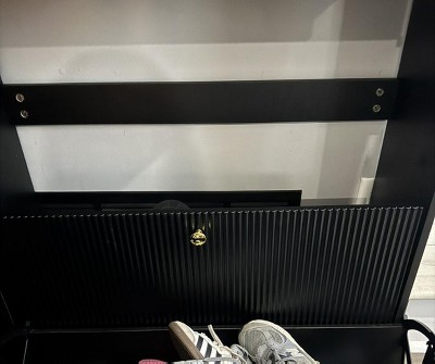 This item arrived damaged; weighed 70+ pounds; and then as it assembled, the fiber boards cracked one by one near the half-drilled screw holes. The assembly instructions were incomplete; there were over 200 screws for this item! I tried to get a refund and Target refused because it was a "Target Plus" item sold by a third party. Do yourself a favor and do NOT purchase this shoe cabinet. Learn from my $120 mistake. Had to throw it out and never got a refund.