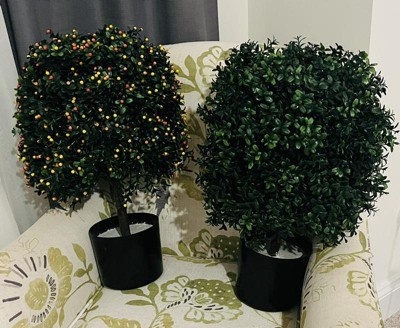 HOMCOM Set of 2 20.75" Artificial Boxwood Topiary Trees with Fruit, Potted Indoor Outdoor Fake Plants for Home Office Living Room Decor, Orange