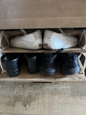 This is great if you only want to put women's sandals or kids shoes inside. If you have men's shoes, probably forget about it. If you have work shoes or anything with even a slight heel, they'll probably get misshapen from having to be shoved in and squished in a little tiny space. You could probably remove the middle shelf to make more height so your shoes don't squish from the top but anything longer than average will still not be able to close and you will be limited to less than 6 pair of shoes being stored.