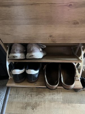 - Ample Storage: This shoe cabinet for entryway can hold up to 15 pairs of shoes. You'll also get a flat tabletop to display knick-knacks or photo albums.