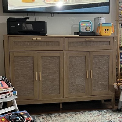 HOMCOM Sideboard Buffet Cabinet with Storage, Boho Coffee Bar Cabinet with Decorative Rattan Fronts, 53" Storage Cabinet with Doors, Drawers, Black