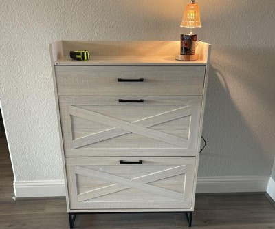 HOMCOM Slim Shoe Cabinet, Farmhouse Entryway Shoe Storage Cabinet with 2 Flip Drawers, Adjustable Shelves, Top Drawer for 12 Pairs, Distressed White