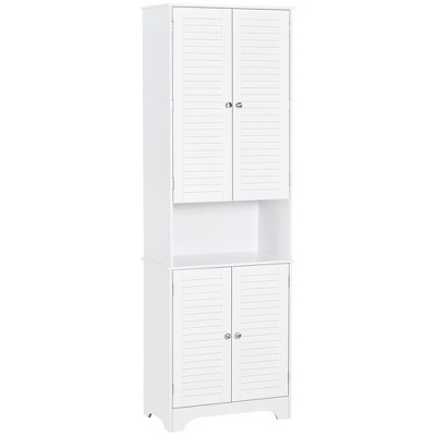 HOMCOM Tall Narrow Bathroom Storage Cabinet with Doors and Shelf Adjustability, Freestanding Bathroom Linen Cabinet, Bathroom Floor Cabinet, White