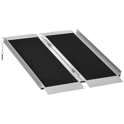 HOMCOM Textured Aluminum Portable Wheelchair Ramp for Home, Steps, Doorways, Foldable Handicap Ramp 5', Threshold Ramp with Strong Load-Bearing