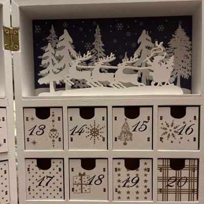 HOMCOM Wooden Christmas Advent Calendar Book, Table Holiday Decoration with 24 Countdown Drawers, for Kids and Adults, White