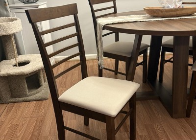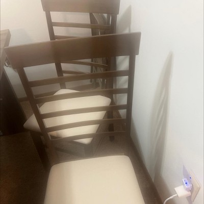 For the price, these chairs are perfect! They’re study and feel like quality fake wood. My only grievance is that one direction instructs you to install two brackets into the back side piece, although that section is missing the two pilot holes. It’s very confusing, but you can always drill your own holes, given you have a powered drill. The cushions are also more of a cream color than a white (which I’m happy about) although the image online is a bit deceiving. I love them! They’re very beautiful and nice looking. Definitely would recommend for anyone wanting to save money.