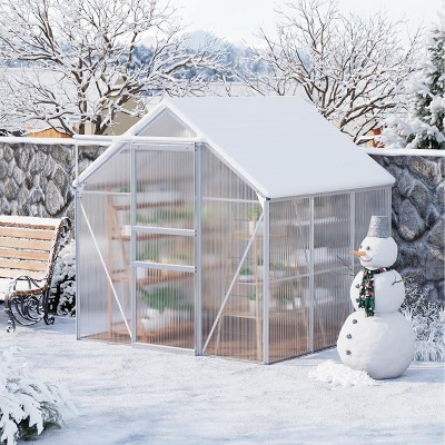 Home 6 x 8 FT Polycarbonate Greenhouse, Winter Greenhouses for Outdoors with Aluminum Frame, Sliding Door, Adjustable Roof Vent, Silver