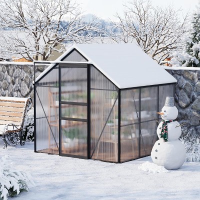 6x8FT Polycarbonate Greenhouse Heavy Duty Green Houses Outdoor Greenhouses Aluminum Sliding Doors Vent Window