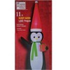 Let this cheery, giant penguin greet family and friends as they approach your house this Christmas. The Home Accents Holiday 11 FT Giant-Sized Inflatable LED Penguin is wearing his red Santa hat, green scarf and holding a present for the holiday season. Indoor/Outdoor. Self-inflates. Ground stakes included. Dimensions: 11' H X 47.6" W