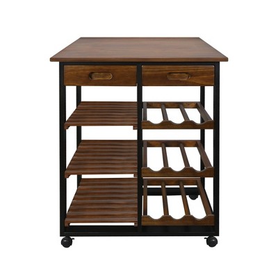 Home Aesthetics Rolling Bamboo Kitchen Island Cart Food Prep Trolley, with Towel Rack Drawers