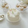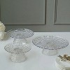 Display your desserts beautifully with this set of three clear plastic stackable pedestal cupcake stands, featuring an elegant pressed design. Perfect for parties, events, or home use, these lightweight yet sturdy stands provide versatile arrangement options. Use them stacked or separately to showcase cupcakes, pastries, and treats while adding a stylish and organized touch to any dessert table setting.