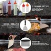 - This set includes 4 egg rings, a spatula set, a scraper, meat knife, tongs, a chopper, cleaning brush, turner, basting brush, grill fork, a dome, 2 squeeze bottles, 2 spice shakers, and 8 hooks