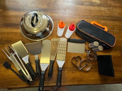 [This review was collected as part of a promotion.] This set is awesome! It has literally everything you could possibly need for grilling. The tools are well made and are great for more than just grilling! I love the storage bag that comes with it as I was able to fit the majority of the tools into it. It’s going to be great for camping! They clean up really nicely and easily. I can’t wait to use them again!