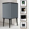 - The waste basket maintains a modern design with a stylish gray basket that conceals unsightly trash without compromising your décor aesthetic