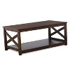 The Home Design 3 Piece Novato Coffee Table Set includes one rectangular coffee table and two end tables, each featuring an elegant X-shaped side design. The set offers additional storage space with a bottom shelf on each table, providing practical convenience for your living area. Showcasing a beautiful natural woodgrain finish, the Home Design Novato Set adds a touch of warmth and sophistication to any family room. Its easy assembly ensures a hassle-free setup, making it a stylish and functional addition to your home décor.