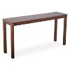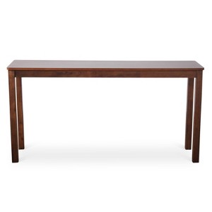 I needed a table that was less than 20 inches wide. This table is just a tad under 16 inces wide. It is sturdy and easy to assemble. I really like that it has rounded corners instead of the typical square corners.
