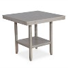 The Home Design 5 Piece Dothan Counter Height Dining Set combines simple elegance with practical functionality. Its minimalist design is highlighted by lower shelves at the bottom of the dining table, offering ample storage space for your belongings. The set features counter-height chairs with rolled tops and button tufting, adding a touch of sleek modern style. Each chair is equipped with a comfortable padded seat and backrest, ensuring a pleasant dining experience. Accommodating up to 4 people, the Dothan Dining Set is perfect for both casual meals and stylish gatherings, making it a versatile addition to any contemporary home.