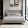 Transform your bedroom with this classic, understated upholstered panel bed. TThe traditional button tufting on the foam-filled headboard makes it the perfect place to rest your head while watching a movie. The beautiful legs and gleaming nailhead trim on the wingback give the sleeping space a modern classic touch. To complete the bed, a box spring and assembly are required. To suit your aesthetic, there are several colors and bed sizes available to choose from.