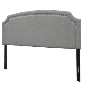 Complete your bedroom with the understated elegance of this upholstered headboard. Crafted from solid and engineered wood, it features a gracefully arched, scooped silhouette that adds a touch of traditional charm. The polyester fabric upholstery is accented with chrome nailhead trim for a subtle nod to French country style, while the foam padding offers supportive comfort for reading or lounging in bed. Designed with practicality in mind, this headboard includes adjustable height settings and comes with installation hardware for quick and easy attachment to your existing bed frame.
