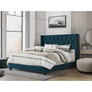 - Features a stylish wingback design on both sides of the headboard, accented with refined nailhead trimming.