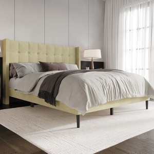 Introducing our Wingback Tufted Platform Bed, a perfect blend of timeless elegance and modern comfort. This bed is designed to elevate your bedroom with its sophisticated features and luxurious appeal. The Wingback Tufted Platform Bed is crafted with precision and attention to detail, offering a contemporary platform style that eliminates the need for a box spring. This design not only provides a sleek and streamlined aesthetic but also ensures easy assembly. Available in three versatile colors - Cream, Dark Brown, and Gray, this bed allows you to choose the shade that complements your personal style and bedroom decor. The soft fabric used in its construction adds a touch of luxury, creating a cozy and inviting atmosphere for a restful night's sleep. No matter your space requirements, our Wingback Tufted Platform Bed comes in a range of sizes - Twin, Full, Queen, and King, ensuring a perfect fit for any bedroom. The rectangular headboard with its classic wingback design exudes sophistication, adding a focal point to your sleeping sanctuary. The tufted detailing not only adds visual interest but also provides a plush surface to lean against while reading or relaxing. Completing the bed's elegant silhouette is the classic tapered footboard leg, contributing to its overall stability and style. This bed is a harmonious blend of classic design elements and modern functionality, making it an ideal choice for various bedroom designs. Transform your bedroom into a haven of style and comfort with our Wingback Tufted Platform Bed. It's more than just a bed; it's a statement piece that enhances the aesthetic appeal of your space while providing a cozy haven for your nightly repose.