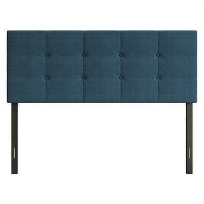 This modern upholstered headboard enhances your bedroom with an elegant and comfortable design. Featuring a clean, rectangular silhouette and a tufted button pattern, it exudes timeless sophistication, seamlessly complementing a variety of interior styles. Upholstered in denim blue or black fabric with a linen texture, it adds a touch of luxury to any space. The headboard is supported by robust metal legs with adjustable height, ensuring compatibility with various bed frames. Suitable for full, queen, and king-sized beds, this piece combines functionality and style, serving as a versatile focal point for any bedroom. With straightforward assembly, it is an ideal addition to elevate your sleeping environment.