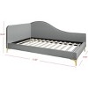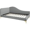 The Home Design Lorettta Upholstered Daybed combines stylish comfort and practical functionality for today’s modern home. Designed with a sloped back and a single high armrest, this elegant piece offers a sophisticated silhouette that enhances any guest room, bedroom, or living room. The soft beige upholstery and decorative nailhead trim add timeless appeal, while the twin-size frame is perfect for lounging by day and accommodating guests by night. Built with a durable wood frame and slat support system, the Lorettta Daybed is both supportive and stylish—with no box spring required. Assembly is quick and easy, making it an ideal choice for adult spaces in need of multifunctional furniture.