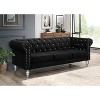 - Showcases rolled arms, deep button tufting, and silver nailhead trim for a timeless, elegant look with a hint of glamour.