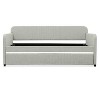 Step into a realm of refined comfort and versatility with the Home Design Amelia Daybed. Picture yourself luxuriating in style during the day, whether nestled with a book or hosting friends in your living space. As evening arrives, seamlessly transition this contemporary piece into a cozy retreat for overnight guests, thanks to its timeless upholstered channel-tufting design. With its sleek lines and sophisticated aesthetic, the Amelia Daybed effortlessly enhances any room while offering a practical solution for seating and sleeping needs. Embrace the modern elegance of the Home Design Amelia Daybed and elevate every moment with its blend of comfort and style.