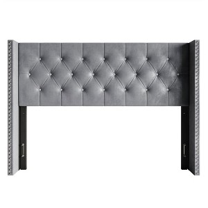 Decorate your bedroom with this diamond tufted velvet upholstered headboard to create a striking and luxurious feel that elevates your bedroom decor. The wingback design and chrome nailhead trim create a striking and elegant feel. This headboard is available in four sizes: Twin, Full, Queen and King and in three colors: Silver Gray, Beige and Black.