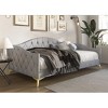 - This daybed is upholstered in soft, high-quality velvet, offering a luxurious feel and a refined look that enhances any room. Gold-finished metal legs provide sturdy support while adding a stylish, contemporary touch.