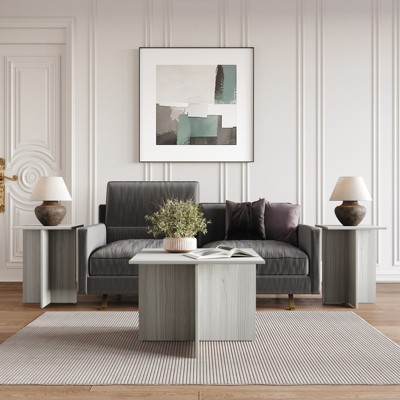 Elevate your living space with this modern, minimalist coffee table set. With its clean lines and versatile design, it seamlessly complements various decor styles. The natural wood grain texture brings warmth and sophistication, while the sturdy construction ensures lasting durability. Available in three adaptable colors, this set allows you to personalize your space effortlessly. Each end table measures 15.7 inches in width and length, standing at 21.9 inches in height—perfectly sized to fit any room. Whether you're updating your living room or creating a stylish focal point, this set adds both function and beauty to your home.