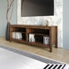 This TV stand combines modern functionality with timeless style, making it a perfect centerpiece for any living room or entertainment area. Featuring four open shelves, it provides ample space to store media players, gaming consoles, and decorative accents. Built-in cut-out holes at the back ensure easy cable management, keeping wires neatly organized and out of sight. The stand rests on four sturdy legs for enhanced stability and is finished in a natural woodgrain that adds warmth and texture to your space. With its clean lines and practical design, this TV stand offers both reliable support for your television and a stylish solution for maintaining an organized, clutter-free environment.