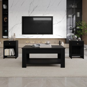Add warmth and functionality to your living space with this Magnolia wood-finish coffee table sets, a perfect blend of natural charm and everyday practicality. Crafted in a rich brown and black colour, this table features a sturdy rectangular build that bring a timeless look to any interior. Designed with a lift-up tabletop, it provides a convenient workspace or dining surface right from your couch, while offering hidden storage beneath. This set complete your space with 2 side end table that perfect blend of function and style. Each end table measures 15.6 inches in width and 11.7 inches for length, standing at 21.9 inches height. Compact and versatile, this piece works beautifully beside your sofa as a minimalist side table.