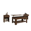 Add warmth and functionality to your living space with this Magnolia wood-finish coffee table sets, a perfect blend of natural charm and everyday practicality. Crafted in a rich brown and black colour, this table features a sturdy rectangular build that bring a timeless look to any interior. Designed with a lift-up tabletop, it provides a convenient workspace or dining surface right from your couch, while offering hidden storage beneath. This set complete your space with 2 side end table that perfect blend of function and style. Each end table measures 15.6 inches in width and 11.7 inches for length, standing at 21.9 inches height. Compact and versatile, this piece works beautifully beside your sofa as a minimalist side table.