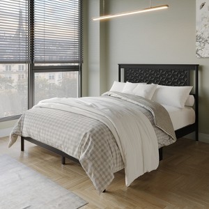 Give your bedroom a fresh look with this stylish panel bed. It features a bold geometric designed headboard that adds a modern touch and makes a strong statement. Crafted from solid wood, the frame is both sturdy and durable. The natural wood grain texture brings warmth, while the clean design suits many different styles. Available in White and Black, it fits easily into both modern and minimalist rooms.