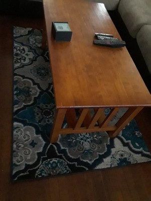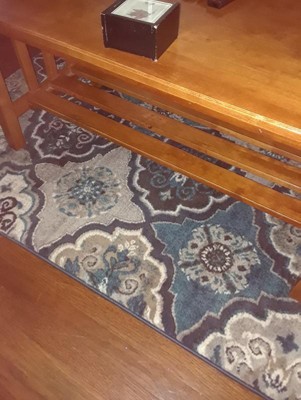 [This review was collected as part of a promotion.] This rug and the colors are just perfect for our house. We just moved into our new home and have a soft grey blue color on the wall and this matches perfectly as an accent rug. It will look great in small hallway or foyer.