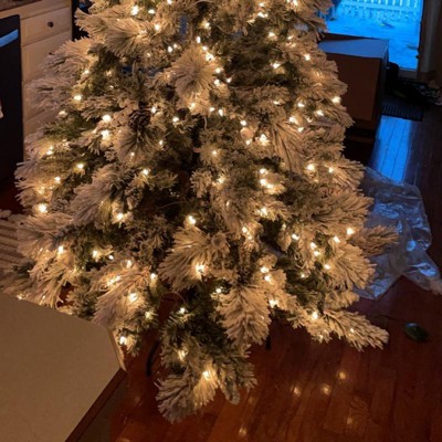 Enjoy all the splendor of a storybook Christmas with the Home Heritage Pre-lit Snowdrift Flocked Artificial Christmas Tree with clear lights.
