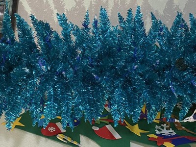 [This review was collected as part of a promotion.] Ever thought "what in the world would I do with THAT?" Those were my exact thoughts about this tree. First of all, I got it AFTER Christmas. And while I would put it up as a secondary (or tertiary) tree, I actually think I'm going to like it as a yearlong house decoration better. Being tall and skinny, it fits into literally any corner. You can even put it into a dark corner because it brings its own light! So, the color.... The description and picture does not really showcase how shiny and blue it is. Imagine Iridescent teal tinsel and you're getting closer to what to expect. I love it. It's quirky, bold, unique. Easy to assemble; and has a man easy foot on/off button so you don't have to plug & unplug constantly.
