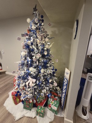 - REALISTIC BLUE FLOCKED DESIGN: The 4.5 ft tree features 436 branch tips and a girth of 34 inches, while the 6.5 ft tree boasts 978 branch tips and a 47-inch girth. The 7.5 ft tree has 1412 branch tips and a girth of 53 inches, all offering a lush, full appearance. The frosted snow flocking adds a realistic, wintry charm to every size, transforming your home into a magical winter wonderland.