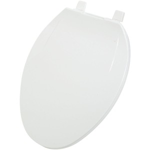 Home Impressions standard grade solid plastic elongated toilet seat. Universally designed hinges provide tight, extremely stable seat-to-bowl installation. Also features a strong nylon bolt with molded-in washer and reinforced Phillips head opening - designed with both drill motors and strong-armed contactors in mind. Fits all elongated toilet bowls.