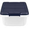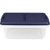 Available in multiple stackable configurations, 15-qt storage bins feature double-rimmed walls to prevent bowing and buckling, while latched handles keep the lids securely attached to the base. What's more, crossbars built into the plastic containers lids provide an extra level of strength and durability. Perfect for office, workshop, and garage storage solutions. This storage bin is ideal for anywhere you need to stack smart and save space. Interior Base Dimensions: 8.26"W x 12.42"L. Exterior Dimensions: 11.99"W x 16.79"L x 6.6"H.