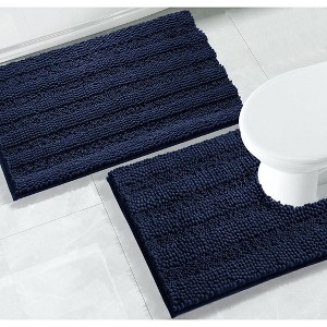Home Mart Goods 2 Piece Navy Blue Soft Cozy Plush Chenille Bath Mat & Contour Bath Rug