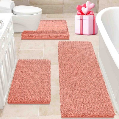 - WATER ABSORBENT: Our bath rugs are made with hundreds of individual piles. The thick chenille fabrics absorb water quickly to help your floors from dripping water while you're getting out of the bath. Moisture is trapped in the mat's high pile, allowing the bath rug to dry quickly.