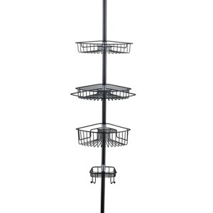 Home Mart Goods 4-Tier Black Corner Tension Pole Shower Caddy