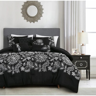 Home Mart Goods 6 Piece Black Gold Medallion Comforter Set Embroidery Soft Bedding
