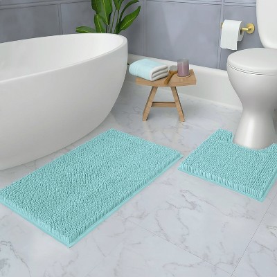 Home Mart Goods Large 2 Piece Set Spa Blue Soft Cozy Plush Chenille Bath Mat Bathroom Rug