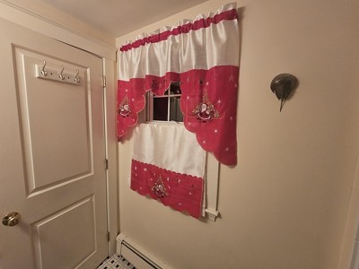 Home Mart Goods Red White Christmas Santa Claus Embroidery Kitchen Curtain 3PC Set Swag & Tiers Set