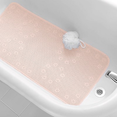 Home Mart Goods White Geometric Circles Vinyl Non-Slip Bathtub Shower Mat With Suction Cups -27" x 15"