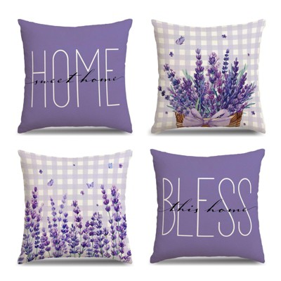 Home Sweet Home Eucalyptus Leaves Green Throw Pillow Covers, 18x18 Inch Spring Summer Seasonal Decorations Set of 4